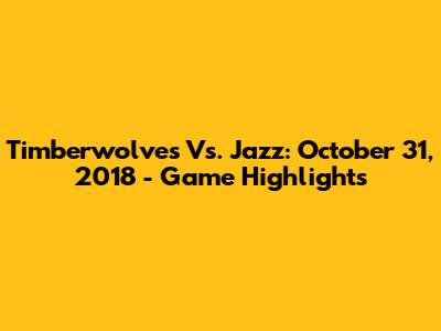 Timberwolves Vs. Jazz: October 31, 2018 - Game Highlights