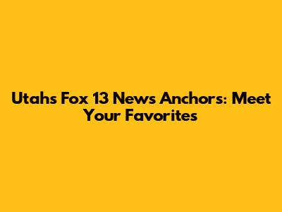 Utah's Fox 13 News Anchors: Meet Your Favorites