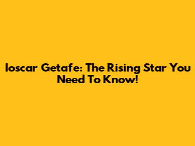 Ioscar Getafe: The Rising Star You Need To Know!