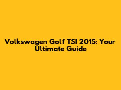 Volkswagen Golf TSI 2015: Your Ultimate Guide