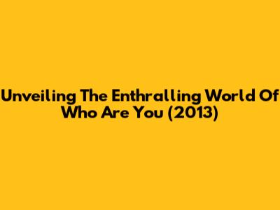 Unveiling The Enthralling World Of 'Who Are You' (2013)