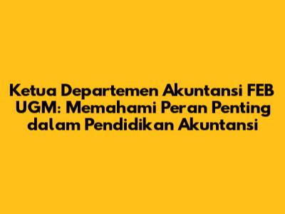 Ketua Departemen Akuntansi FEB UGM adalah sosok kunci dalam dunia pendidikan tinggi akuntansi di Indonesia. Sebagai pemimpin departemen, mereka memegang peranan krusial dalam membentuk kurikulum, membimbing dosen, dan memastikan kualitas pendidikan yang dihasilkan. Artikel ini akan membahas secara mendalam mengenai peran, tanggung jawab, serta dampak yang dimiliki oleh ketua departemen akuntansi di Fakultas Ekonomika dan Bisnis Universitas Gadjah Mada (FEB UGM).
