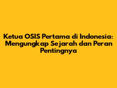 Ketua OSIS pertama di Indonesia adalah pionir yang membuka jalan bagi perkembangan organisasi siswa di Indonesia. Meskipun informasi spesifik tentang siapa mereka mungkin terbatas, semangat kepemimpinan dan dedikasi mereka tetap menjadi inspirasi. OSIS telah menjadi wadah penting bagi siswa untuk belajar kepemimpinan, kerjasama, dan tanggung jawab. Melalui OSIS, siswa dapat mengembangkan potensi diri, menyuarakan aspirasi, dan berkontribusi positif bagi sekolah dan masyarakat. Untuk menjadi ketua OSIS yang sukses, dibutuhkan visi yang jelas, kemampuan komunikasi dan manajemen yang baik, kemampuan bekerja dalam tim, integritas yang tinggi, dan semangat untuk terus belajar dan berkembang. Jadi, semangat terus buat kalian semua yang ingin berkontribusi melalui OSIS! Kalian adalah harapan bangsa!