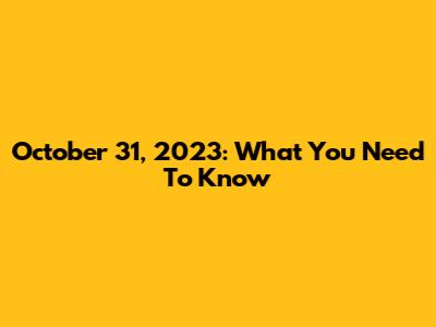 October 31, 2023: What You Need To Know