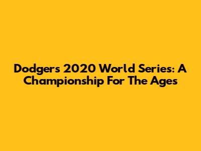Dodgers 2020 World Series: A Championship For The Ages