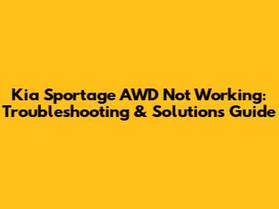 Step-by-Step Troubleshooting for Your Kia Sportage AWD