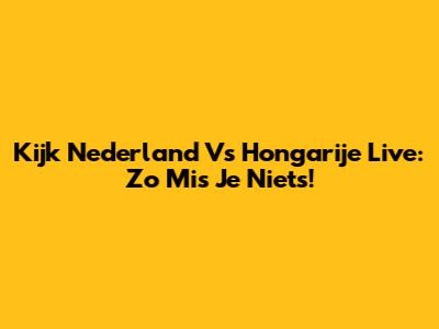 Kijk Nederland Vs Hongarije Live: Zo Mis Je Niets!