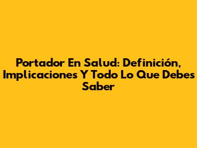 Portador En Salud: Definición, Implicaciones Y Todo Lo Que Debes Saber