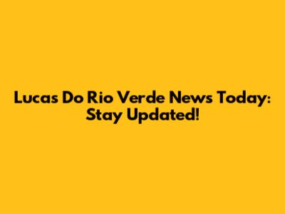 Lucas Do Rio Verde News Today: Stay Updated!