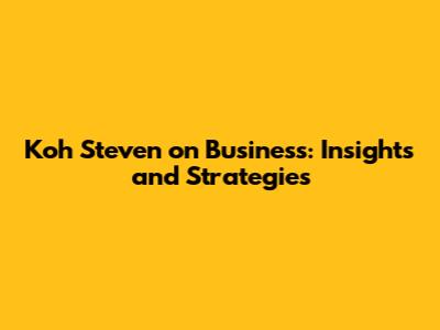 Hey guys! Ever wondered what makes a business tick? Let's dive into the entrepreneurial world with insights from Koh Steven. He's got some seriously cool perspectives on what it takes to build and run a successful business.