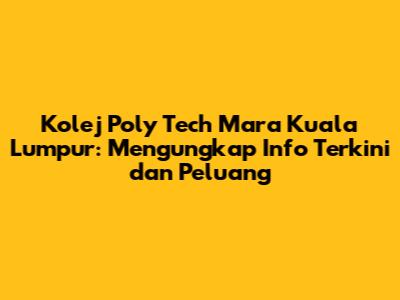 Kolej Poly Tech Mara Kuala Lumpur (KPTM KL) adalah salah satu institusi pendidikan tinggi yang terkemuka di Malaysia. Bagi korang yang mencari maklumat terkini mengenai kolej ini, peluang pendidikan yang ditawarkan, dan berita-berita menarik, korang berada di tempat yang betul! Artikel ini akan merangkumi segala yang korang perlu tahu tentang KPTM KL, daripada program pengajian yang tersedia, kemudahan yang disediakan, sehinggalah kepada tips untuk memohon dan berjaya di kolej ini. Mari kita selami dunia Kolej Poly Tech Mara Kuala Lumpur!