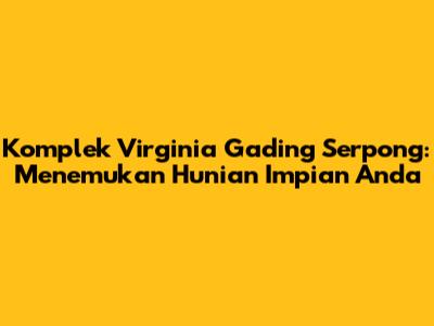 Komplek Virginia Gading Serpong adalah sebuah kawasan perumahan yang menarik perhatian banyak orang di area Gading Serpong, Tangerang. Guys, mari kita bedah lebih dalam mengenai kompleks ini, mulai dari keunggulannya, fasilitasnya, hingga tips memilih hunian yang tepat. Tentu saja, artikel ini akan memberikan gambaran lengkap untuk membantu Anda mempertimbangkan apakah Komplek Virginia adalah tempat yang tepat untuk Anda dan keluarga. Gading Serpong sendiri sudah dikenal sebagai salah satu kawasan paling berkembang di area Jabodetabek. Perumahan ini menawarkan berbagai pilihan hunian, mulai dari rumah tapak hingga townhouse, yang dirancang untuk memenuhi kebutuhan berbagai gaya hidup dan anggaran. Lokasinya yang strategis, fasilitas yang lengkap, serta lingkungan yang nyaman menjadikan Komplek Virginia sebagai pilihan menarik bagi mereka yang mencari hunian ideal. Dalam artikel ini, kita akan menjelajahi semua aspek penting yang perlu Anda ketahui sebelum memutuskan untuk membeli atau menyewa properti di Komplek Virginia. Yuk, simak lebih lanjut!