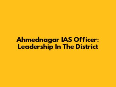 Ahmednagar IAS Officer: Leadership In The District