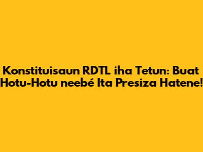 Konstituisaun RDTL mak lei inan ita-nian. Nia garante ita-nia direitu no liberdade, no define oinsá governu funsiona. Hatene kona-ba Konstituisaun la'ós de'it importante, maibé mós responsabilidade sidadaun nian. Bainhira ita hatene ita-nia direitu, ita bele defende ita-nia aan. Bainhira ita hatene oinsá governu funsiona, ita bele partisipa iha prosesu demokrátiku.