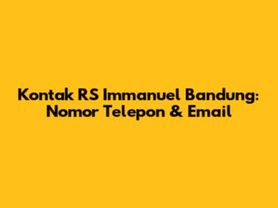 Kontak RS Immanuel Bandung: Nomor Telepon & Email