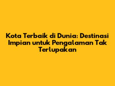 Dengan mengikuti tips di atas dan membuka diri terhadap pengalaman baru, kamu akan memiliki pengalaman perjalanan terbaik yang akan menjadi kenangan indah sepanjang hidupmu. Jadi, tunggu apa lagi? Rencanakan perjalananmu ke kota terbaik di dunia sekarang juga! Selamat menjelajah dan semoga petualanganmu menyenangkan, guys!