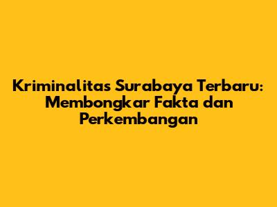 Berita kriminal Surabaya terbaru selalu menjadi sorotan utama bagi warga kota. Sebagai kota metropolitan terbesar kedua di Indonesia, Surabaya tak luput dari berbagai kasus kejahatan yang menarik perhatian publik. Artikel ini akan membahas secara mendalam mengenai berita kriminal Surabaya terbaru, meliputi berbagai aspek seperti jenis kejahatan yang marak terjadi, perkembangan penanganan kasus oleh pihak kepolisian, serta upaya pencegahan yang dilakukan pemerintah kota. Mari kita telusuri bersama dinamika dunia kriminal di kota pahlawan ini.