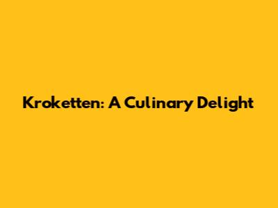 Kroketten: The Ultimate Guide