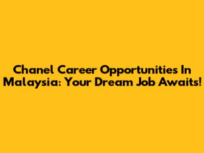 Chanel Career Opportunities In Malaysia: Your Dream Job Awaits!