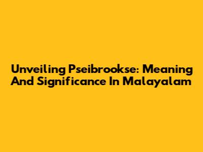 Unveiling 'Pseibrookse': Meaning And Significance In Malayalam