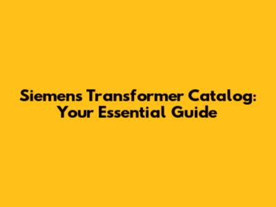 Siemens Transformer Catalog: Your Essential Guide