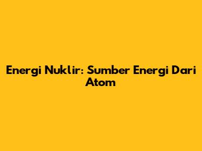 Energi Nuklir: Sumber Energi Dari Atom