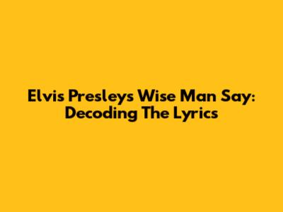 Elvis Presley's Wise Man Say: Decoding The Lyrics