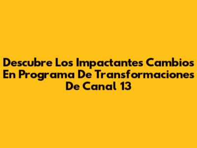 Descubre Los Impactantes Cambios En 'Programa De Transformaciones' De Canal 13