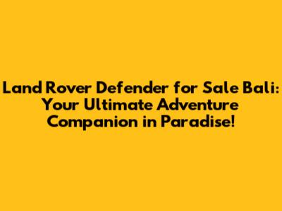 Hey guys, are you dreaming of exploring the breathtaking landscapes of Bali in a vehicle that's as rugged and adventurous as the island itself? Look no further! The Land Rover Defender is the perfect choice, and finding a Land Rover Defender for sale in Bali is your first step towards unforgettable experiences. This article dives deep into why the Defender is ideal for Bali's terrain, where you can find one, and what to consider before making your purchase. So, buckle up, and let's get started!