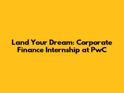 Land Your Dream: Corporate Finance Internship At PwC