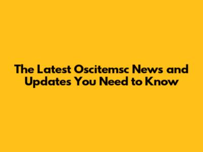 Latest Oscitemsc News And Updates