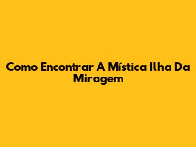 Como Encontrar A Mística Ilha Da Miragem