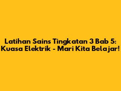 Guys, bersedia untuk menyelami dunia kuasa elektrik? Bab 5 dalam Sains Tingkatan 3 memang seronok dan penting! Di sini, kita akan belajar semua tentang elektrik, dari arus hingga voltan, dan bagaimana ia berfungsi dalam kehidupan seharian kita. Jangan risau, kita akan buat ia mudah dan menyeronokkan. Jom kita mulakan dengan soalan-soalan yang akan membantu anda menguasai topik ini.