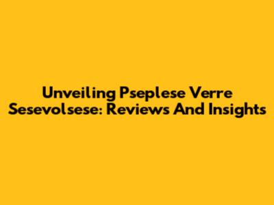 Unveiling Pseplese Verre Sesevolsese: Reviews And Insights