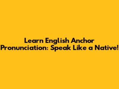 Tips and Tricks for Perfect 'Anchor' Pronunciation