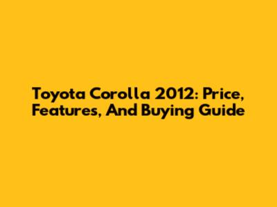 Toyota Corolla 2012: Price, Features, And Buying Guide