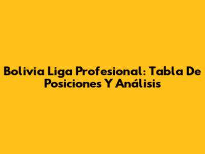 Bolivia Liga Profesional: Tabla De Posiciones Y Análisis