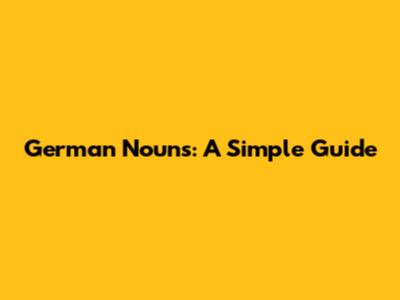 German Nouns: A Simple Guide