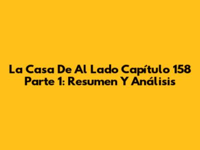 La Casa De Al Lado Capítulo 158 Parte 1: Resumen Y Análisis