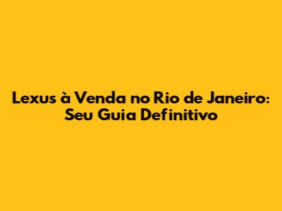 Olá, pessoal! Se você está procurando um Lexus à venda no Rio de Janeiro, você veio ao lugar certo! Neste guia completo, vamos mergulhar no fascinante mundo dos Lexus disponíveis na Cidade Maravilhosa. Discutiremos tudo, desde os modelos mais populares até dicas essenciais para comprar com segurança e sabedoria. Preparados? Vamos nessa!