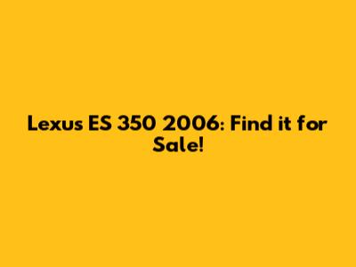 Hey guys! Are you on the hunt for a reliable and stylish ride? Maybe a 2006 Lexus ES 350 has caught your eye? Well, you're in the right place! Let's dive into what makes this car a fantastic option and how you can snag one for yourself. Finding the right car can sometimes feel like searching for a needle in a haystack, but with a bit of know-how, you can drive away happy. So, buckle up, and let's explore the world of the 2006 Lexus ES 350!