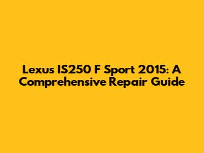 Hey guys! If you're here, chances are you're either a proud owner of a 2015 Lexus IS250 F Sport or you're considering becoming one. Either way, welcome! This guide is designed to be your go-to resource for everything related to the repair and maintenance of your awesome ride. We're going to dive deep into the nitty-gritty, covering everything from routine maintenance to more complex repairs. Get ready to become a Lexus IS250 expert! This guide is packed with the information you need to keep your car running smoothly and looking its best. Whether you're a seasoned mechanic or a DIY enthusiast, this comprehensive guide will provide you with valuable insights, tips, and tricks to tackle any repair challenge that comes your way. Let's get started, shall we?