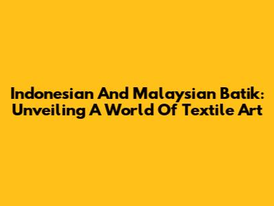 Indonesian And Malaysian Batik: Unveiling A World Of Textile Art