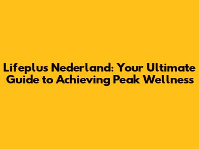 Lifeplus Nederland: Your Ultimate Guide to Achieving Peak Wellness