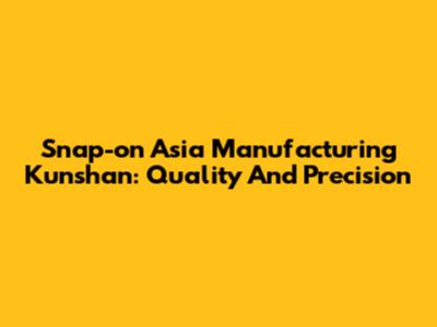Snap-on Asia Manufacturing Kunshan: Quality And Precision