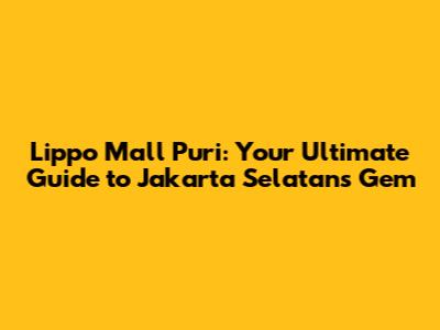 Hey guys, if you're looking for a top-notch shopping and entertainment destination in Jakarta Selatan, then you've gotta check out Lippo Mall Puri. It's more than just a mall; it's a vibrant hub where you can shop 'til you drop, grab a delicious bite, catch a movie, or just chill and hang out. I'm going to walk you through everything you need to know about this awesome spot, from its location and what you can find there to tips on getting the most out of your visit. So, buckle up, and let's dive into the world of Lippo Mall Puri!