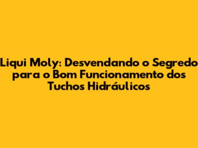 Liqui Moly é um nome que ressoa entre os entusiastas automotivos, sinônimo de qualidade e desempenho. Mas, você sabe como o Liqui Moly pode ser o herói dos seus tuchos hidráulicos? Neste artigo, vamos mergulhar fundo no universo do Liqui Moly e descobrir como seus produtos podem ser a solução que você procura para manter seu motor funcionando suavemente. Prepare-se para desvendar os segredos por trás dessa marca alemã renomada e entender como ela pode fazer a diferença no seu carro.