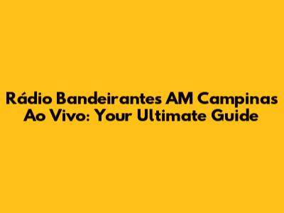 Hey guys! Are you searching for Rádio Bandeirantes AM Campinas ao vivo? You've landed in the right place! In this article, we're diving deep into everything you need to know about tuning into this iconic radio station. Whether you're a local, an expat, or just a fan of Brazilian radio, we'll cover all the ways you can catch Rádio Bandeirantes AM Campinas live, no matter where you are.