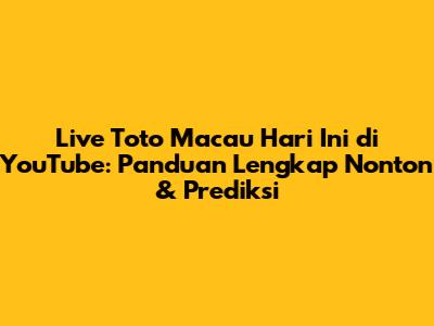 Jadwal Tayang Toto Macau Live YouTube Hari Ini