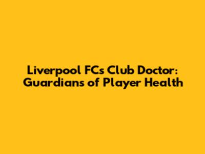 The Unseen Heroes: What Does a Liverpool FC Club Doctor Do?